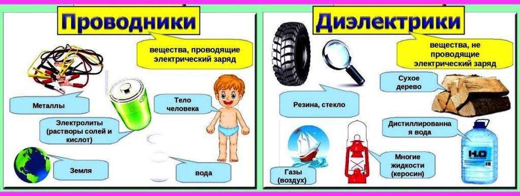 Проводниками являются металлы, электролиты (растворы, проводящие ток) плазма. В металлах носителями зарядов являются свободные электроны, в электролитах – положительные и отрицательные ионы, в плазме – свободные электроны и ионы.