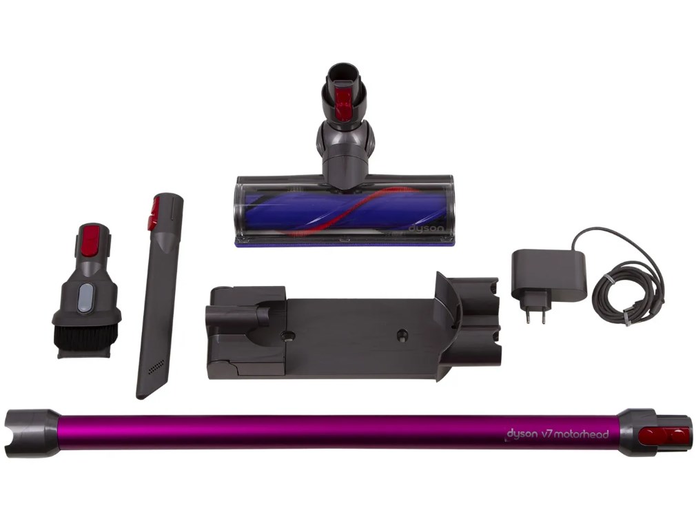 Dyson V7 Motorhead – оптимальный беспроводной пылесос для очистки 2-3 комнатной квартиры. Модель отличается удобством запуска, легким весом, оригинальным оформлением.