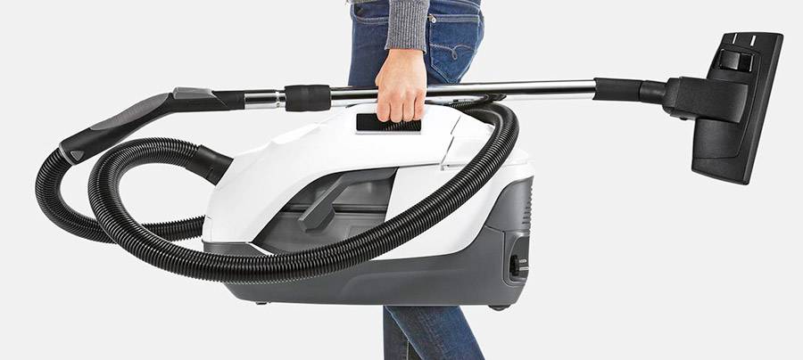 Пылесос Керхер для дома с аквафильтром максимально экономичен – при 650 Вт обеспечивает ту же по показателям тягу. Отличается не только медицинским белым цветом, но и гибким шлангом на 2,1 м. За счёт плотного гофрированного пластика она не перегибается, а маленький диаметр 3,5 см делает его манёвренным, гибким, легко вращаемым.