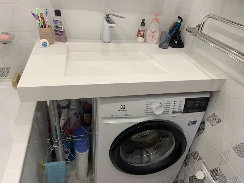 Умывальник из искусственного камня над стиральной машинойИсточник tildacdn.com