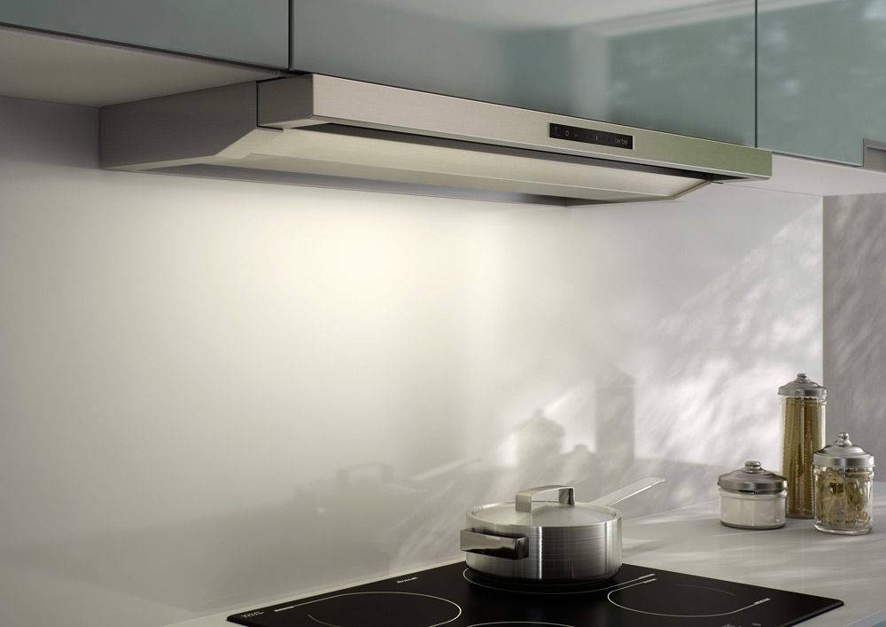 Это более функциональный вариант, который не бросается в глаза и никаким образом не способен испортить интерьер. Монтируют такую вытяжку над плитой в навесной шкафчик. Многие модели оснащены выдвижной панелью, с помощью которой можно увеличивать поверхность вытяжки и, соответственно, увеличивать ее производительность. В плане цены такие вытяжки не намного дороже традиционных, поэтому лучше отдать предпочтение такому варианту, особенно если вы покупаете устройство вместе с кухонной мебелью.