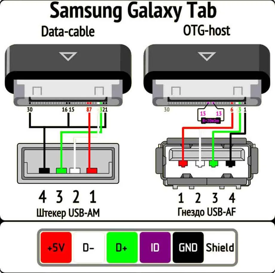 Распиновка штекера и гнезда планшета Samsung Galaxy