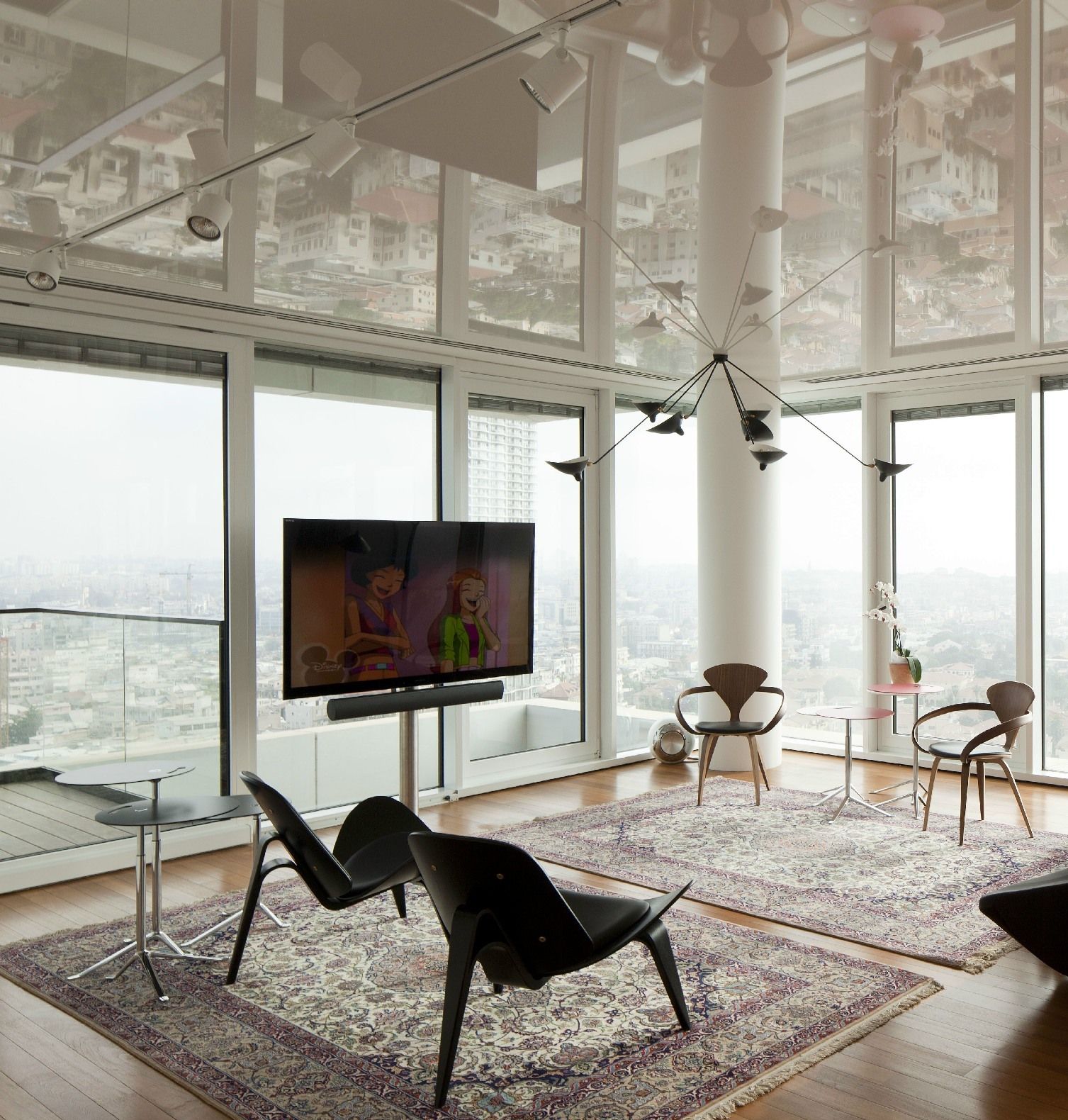 Гостиная – комната с высоким уровнем освещения. Здесь обойтись только спотами вряд ли получится.