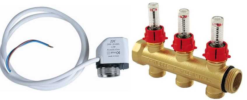 Комплект гребенки для теплого пола с автоматическим регулированием при помощи комплекса термодатчиков, размещаемых непосредственно в тех помещениях, которые обогреваются