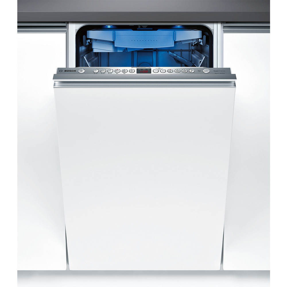 Полновстраиваемая конденсационная машина Bosch SPV45DX10R обладает довольно узким корпусом. Его ширина не превышает 45 сантиметров, поэтому машину часто приобретают для малогабаритных квартир и студий. За один цикл она обрабатывает до девяти комплектов посуды. Этому способствует высококачественный и надежный инвенторный двигатель, а также приятные дополнения от Bosch. К наиболее значимым причисляют автодоводчик дверцы ServoSchloss, напольный луч InfoLight и хорошую систему защиты от протечек AquaStop. Список достоинств машины часто дополняет таймер. Он позволяет без всяких последствий откладывать мойку на срок до 24 часов.