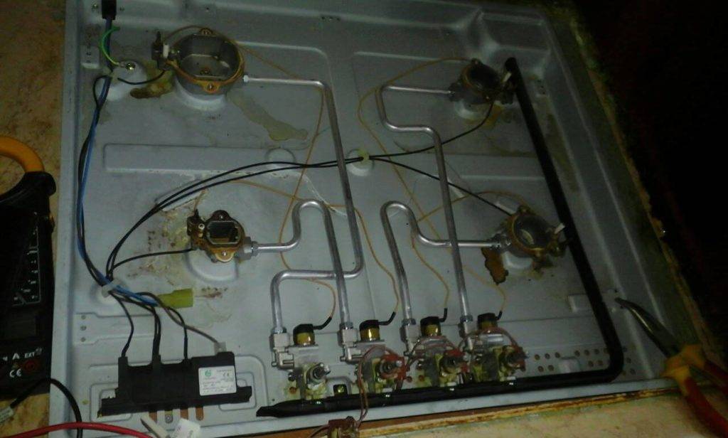 Проблемы с электророзжигом, в основном, возникают из-за короткого замыкания, произошедшего по вине протекшей воды. Чтобы устранить эту неисправность, потребуется зачистить и просушить провода, проложенные от блока-генератора (располагается у торца плиты, под варочной панелью) к конфоркам. Далее эти детали нужно разместить на пластиковых подставках. Также электроподжиг выходит из строя из-за жирового нагара, скопившегося на свечах. Для устранения этой неисправности потребуется: