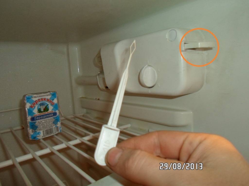 В процессе эксплуатации в дренажной системе холодильника появляются загрязнения – небольшие кусочки продуктов, жир, пыль. Чтобы под отсеком для овощей или под днищем не было влаги, стоит регулярно проводить чистку дренажной трубки.