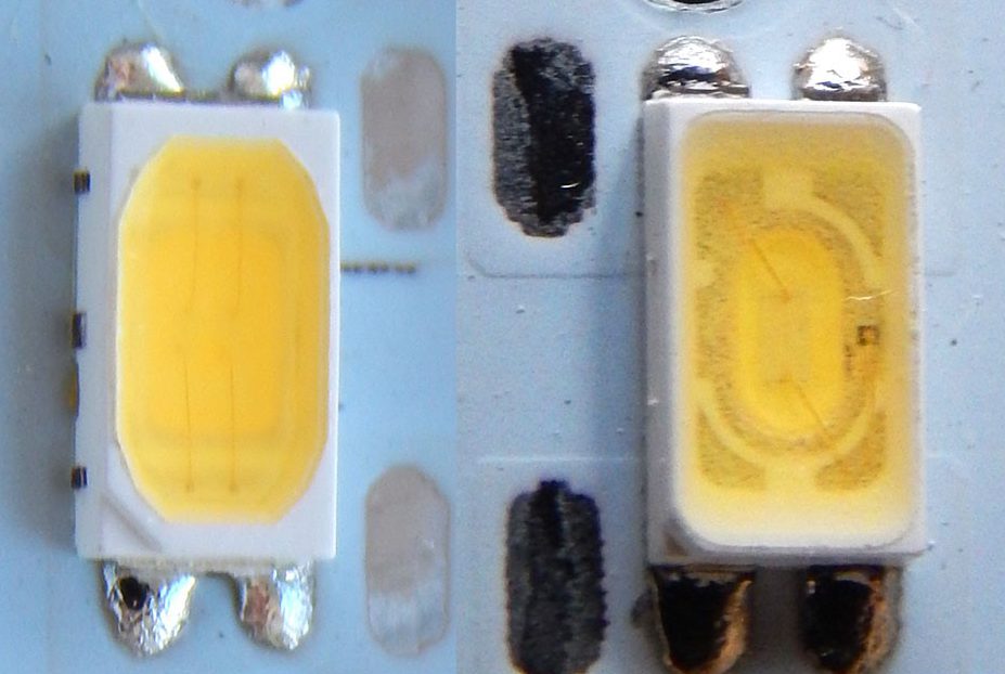 - Замените сгоревшие светодиоды их аналогами. Используйте только применённый тип светодиодов. Монтировать другие модели запрещается, так как они имеют другой ток нагрузки и выйдут сами или выведут из строя всю цепь.