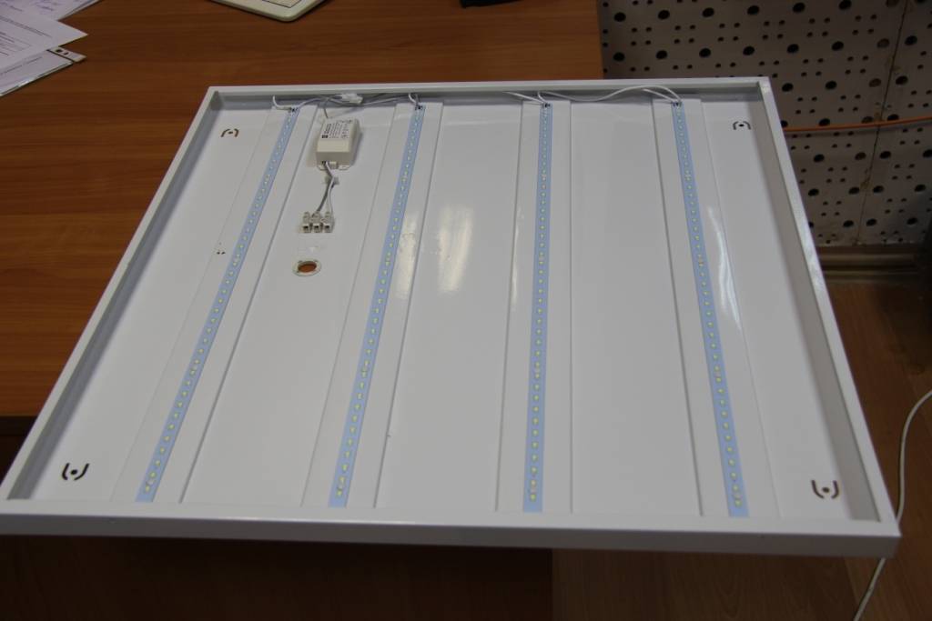 Заключение Сегодня светодиодные светильники находятся почти в каждом доме. Благодаря своему низкому энергопотреблению и большому световому потоку их популярность растёт с каждым днём. Благодаря ему комфортно освещаются миллионы офисных помещений. Давайте посмотрим, как он устроен, какие причины неполадок могут возникать в ходе его эксплуатации, и произведём ремонт светодиодного светильника Армстронг. Конструкция светильника Внешний вид панели. Потолочный светодиодный светильник Армстронг имеет размер 600х600 мм. Устанавливается в профиль подвесного потолка соответствующего типа.