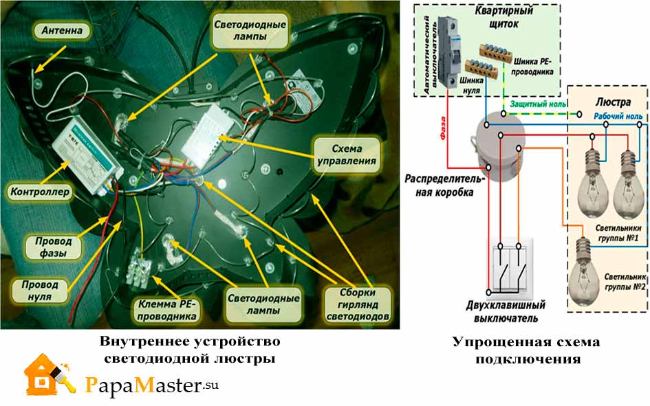 Осветительный прибор должен исправно выполнять все эти функции через пульт управления (иногда бывает 2 пульта) и исполнять основные действия через выключатель.