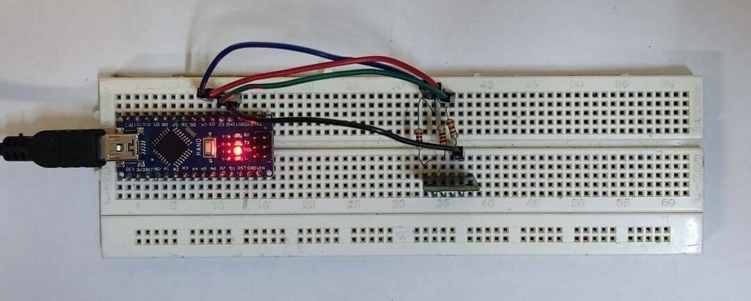 And here’s the more practical breadboarded version (again, the circuit diagram is the same in both the non-breadboard and breadboard version):
