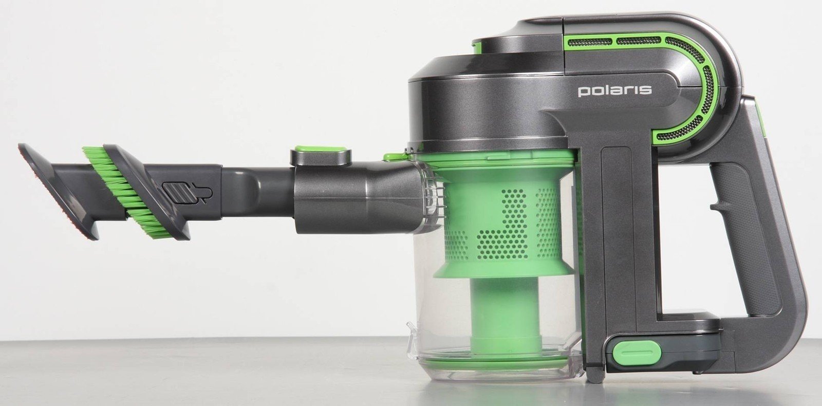 Первое, что нас удивило — богатая комплектация. Polaris PVCR 0726W — многофункциональный пылесос, помимо обычной уборки он умеет делать… влажную уборку! И, соответственно, в комплекте есть для этого дополнительный контейнер с ёмкостью для воды.