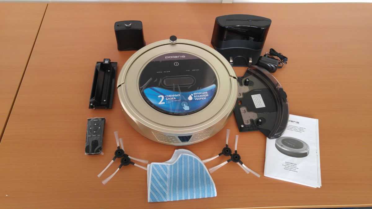 - Комплектация робота-пылесоса Поларис включает в себя все необходимые элементы.