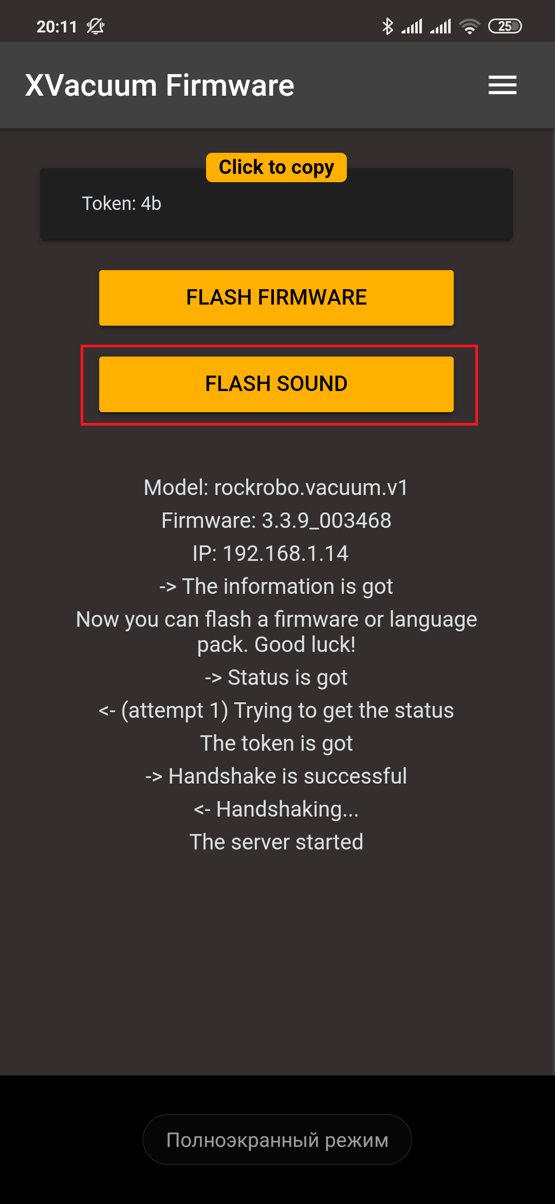Xvacuum Firmware нажимаем на кнопку Flash Sound