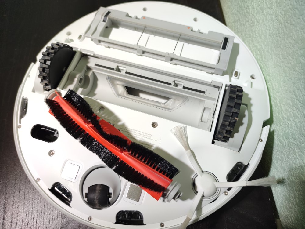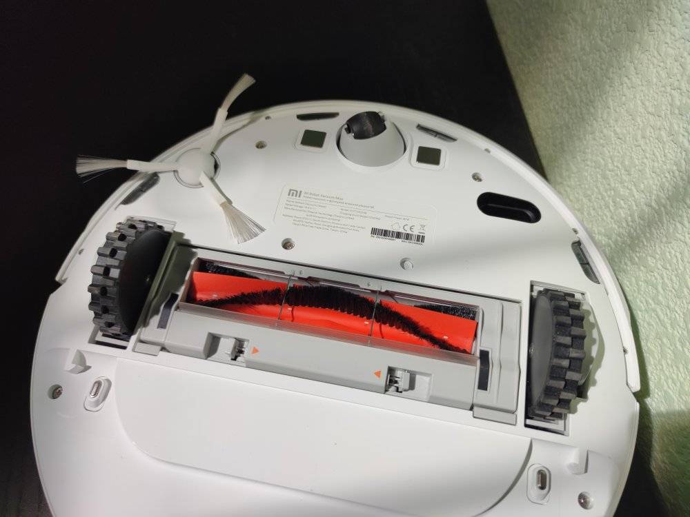На дне по центру расположена основная щетка для сбора пыли. Она имеет простой и надежный механизм крепления к корпусу пылесоса. Придраться можно лишь к ворсу щетки – он кажется недостаточно жестким для сбора пыли разных фракций. Впрочем, при использовании функции влажной уборки этот недостаток совершенно неважен, так как мелкая пыль прекрасно собирается тряпочкой из микрофибры.