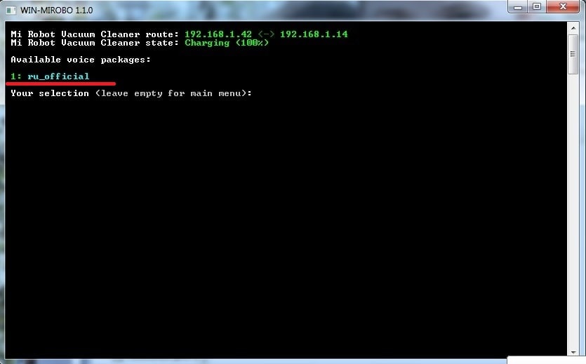 Далее у нас должны отобразиться доступные голосовые пакеты, те которые вы поместили в папку voicepacks, каждый будет под определенным номером, поэтому вводим с клавиатуры необходимый номер и нажимаем на кнопку enter