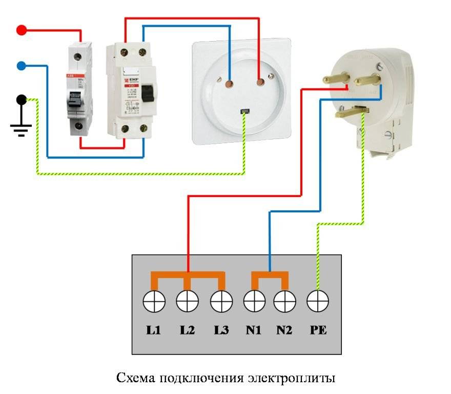 Если при подключении такого электрооборудования перепутать местами фазный и нулевой провода, это никак не отразится на его работе (за исключением того, что при отключенном автомате на токоведущих частях плиты будет напряжение относительно земли). Однако ни в коем случае нельзя допускать ошибочного подключения фазного провода к заземляющему контакту.