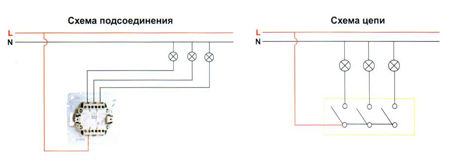 схема подключения трехклавишного выключателя