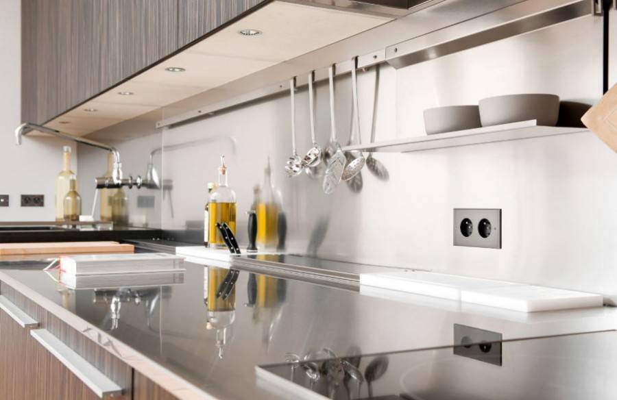 - еще один важный момент касается установки в месте расположения фартука. Розетки на кухне должна возвышаться над столешницей, по меньшей мере, на 10-15 см, чтобы исключить риск попадания в них капель воды и жира.