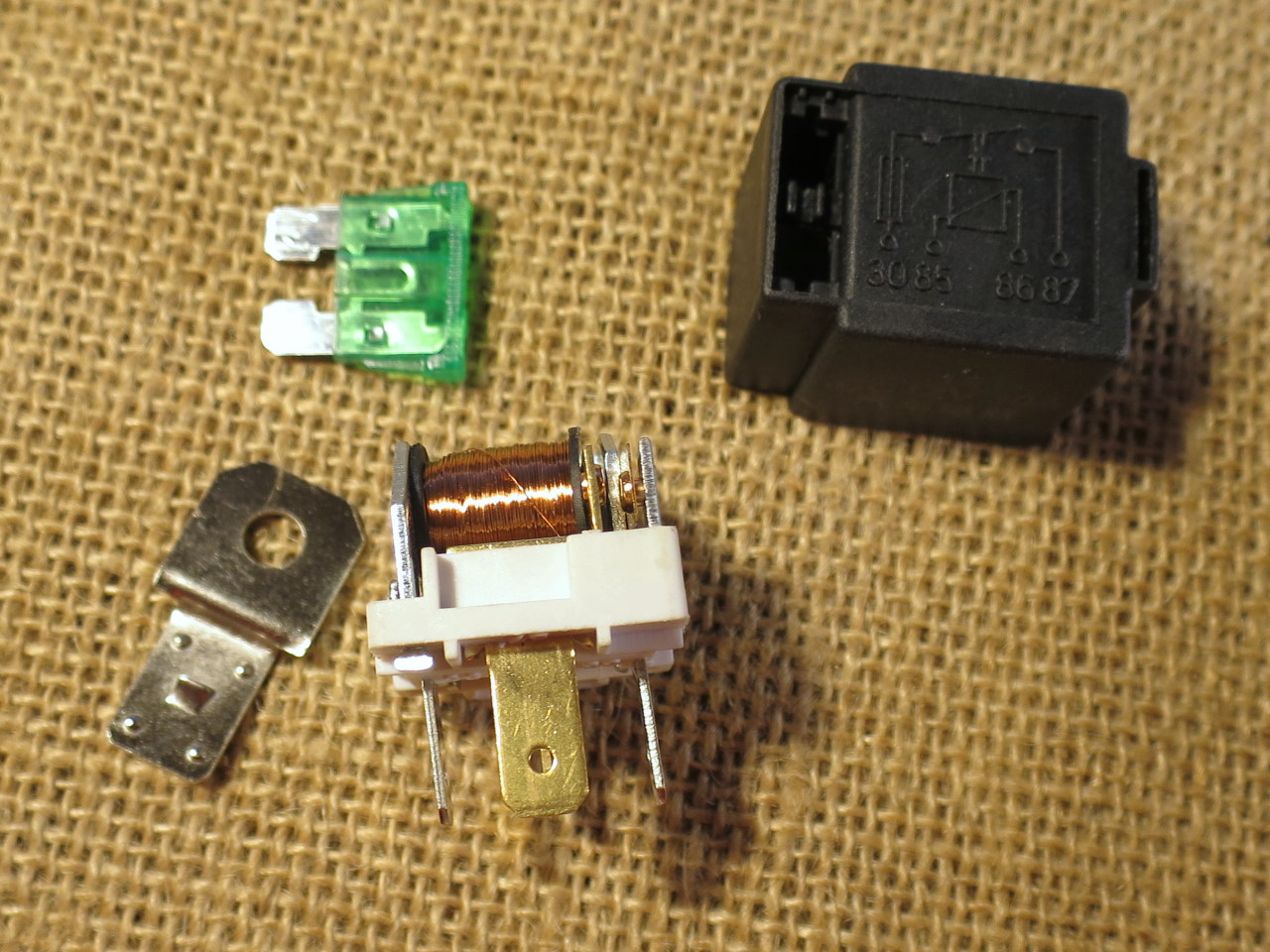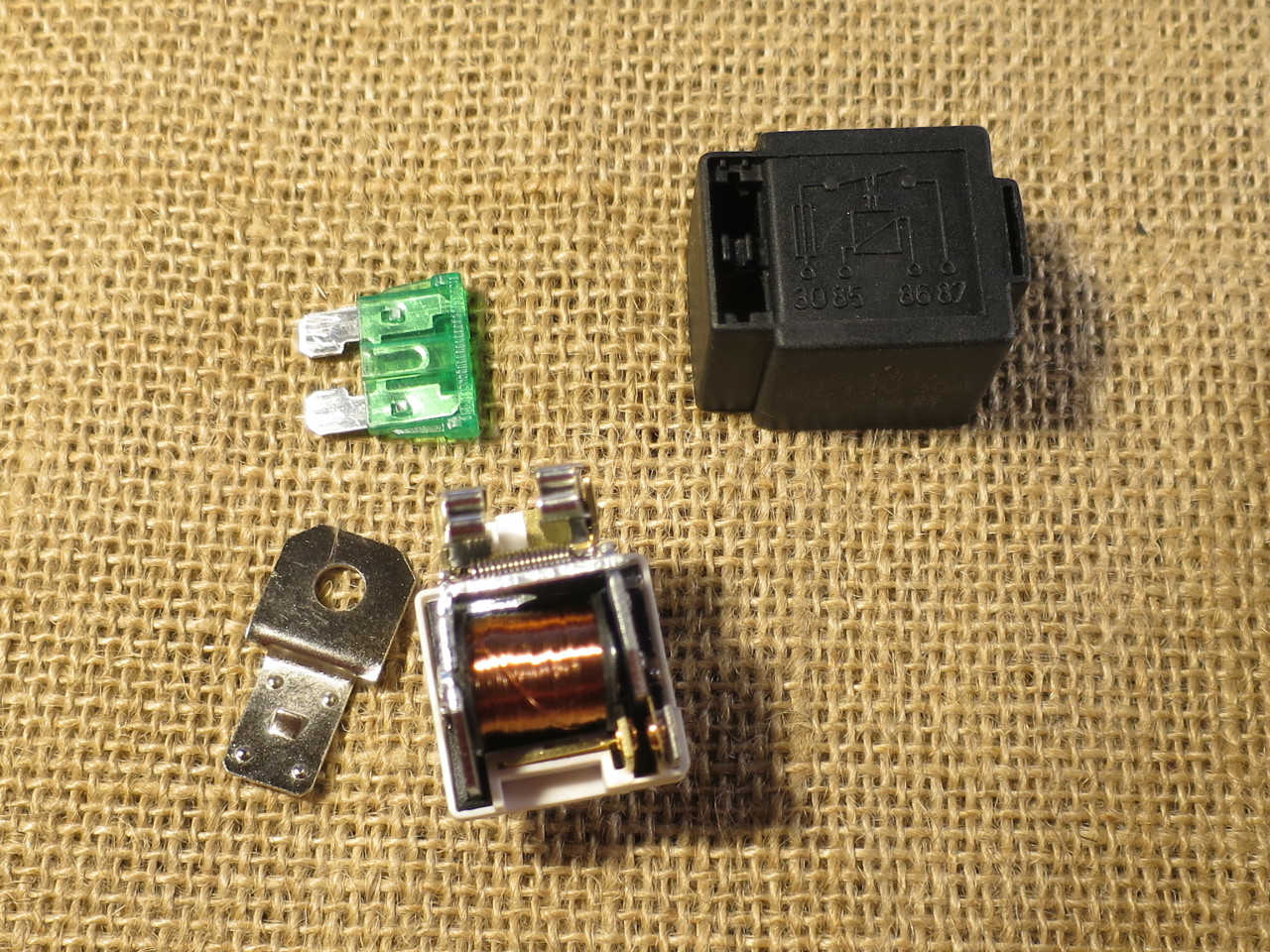 Простая автомобильная четырехконтактная релюшка. Но фишка в том, что прямо в корпус реле устанавливается предохранитель. Тоже стандартный автомобильный. Идеальна для установки доп. систем в автомобиль.