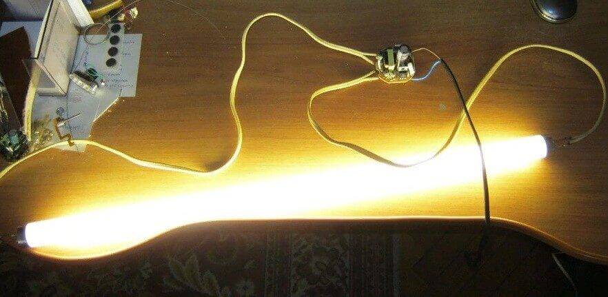 Напряжение на контактах ламп может быть очень высоким, доходить до 1 тыс. вольт и выше. Такие схемы опасны для окружающих.