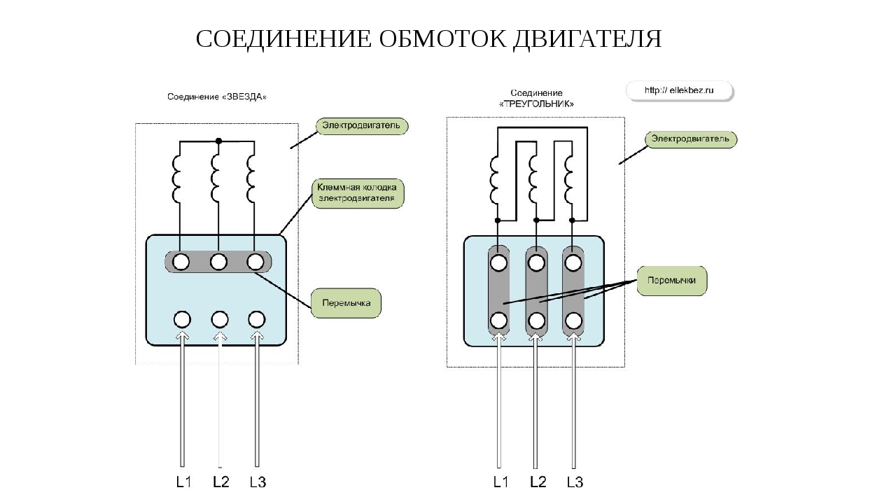 Еще один пример соединения обмоток двигателя по схеме “звезда-треугольник”: