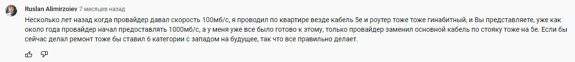 Кабель CAT5e в теории способен пропустить максимум до 1 Гбит/с, в реалиях не более 800 Мбит/с. И сегодня этого более чем достаточно.