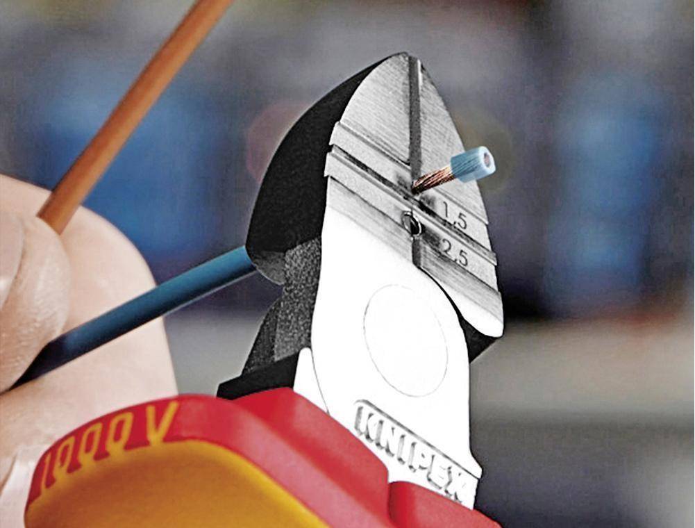 Бокорезы с насечками для зачистки проводов сечением 1,5 и 2,5 мм²