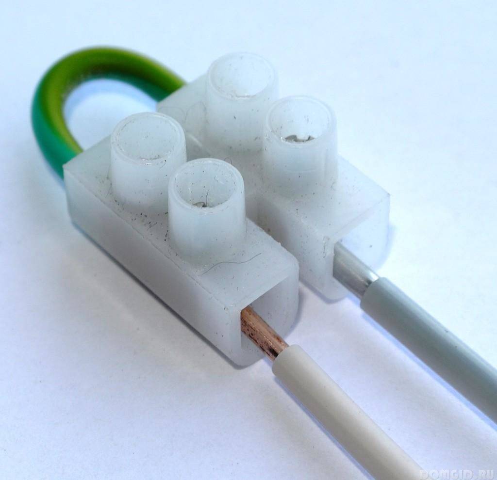 При этом используется соединение проводов с помощью зажимов винтового типа. Это позволяет обеспечить прочную фиксацию. Не стоит использовать винтовые клеммники для проводов из алюминия.