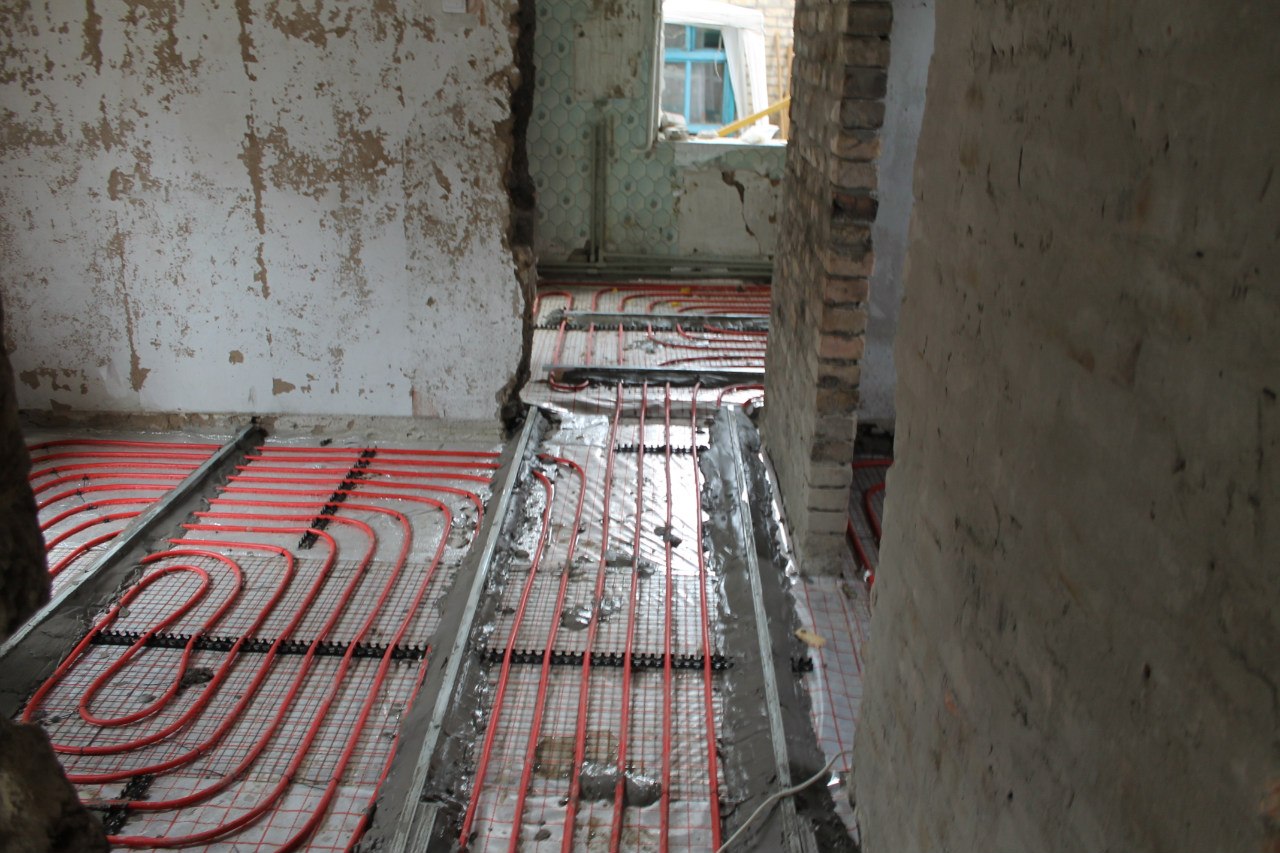 Если гидравлические испытания закончились успешно, разгерметизация труб не произошла, и система полностью наполняется теплоносителем, то этап монтажа труб завершился. Теперь можно приступать к устройству стяжки и к финишной отделке.