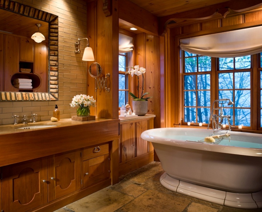 Ванны овальной или круглой формы – это классика жанра, но однозначно не для малогабаритных помещений. В большинстве случаев, это отдельно стоящие объекты, которые принято делать композиционным центром помещения. Их установка предполагает возможность подхода к чаше с любой стороны. Круглые купели чаще всего монтируют в подиум, а вот овальные принято устанавливать на красивых ножках или закрывать панелью по всей площади.
