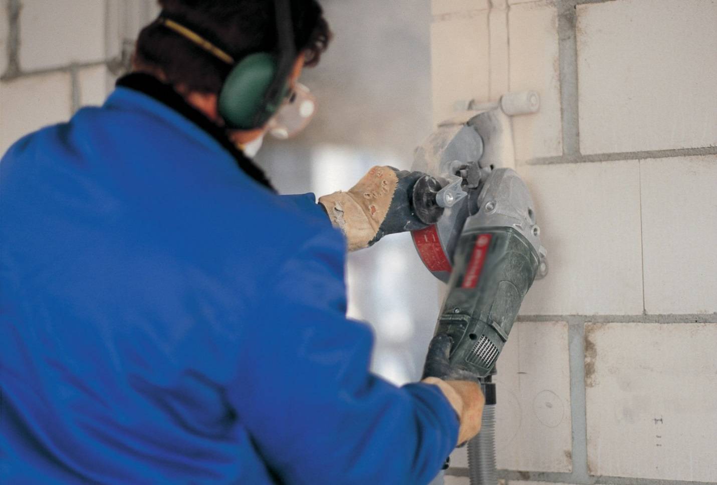 Во время работы должна быть обеспечена защита рук, глаз и органов дыхания. Для этого используется респиратор, прочные перчатки и защитные очки. Рекомендуется проводить штробление при наличии резинового коврика под ногами.