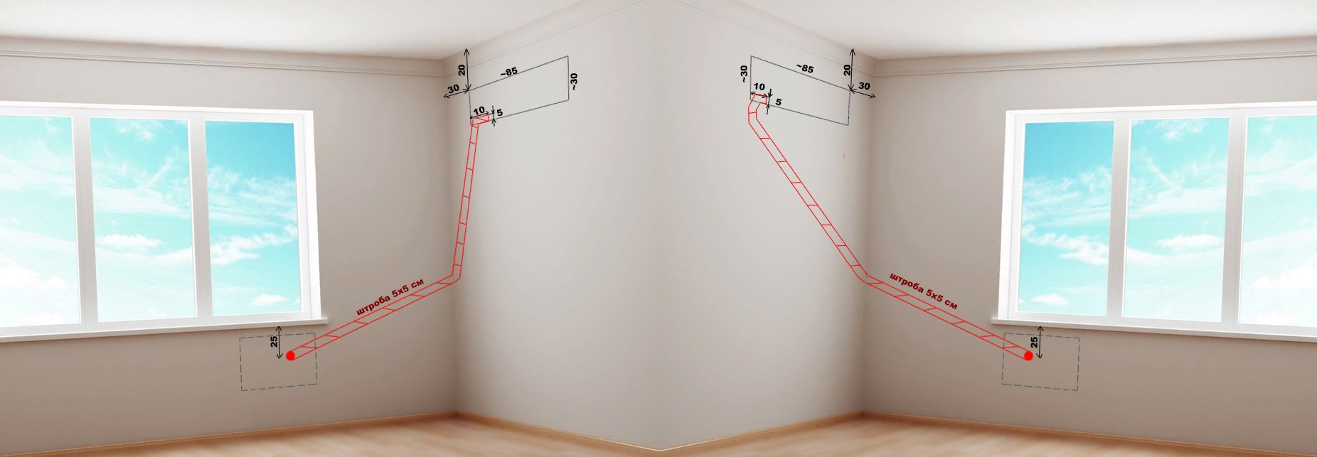 Расстояния, глубина, ширина штробы
