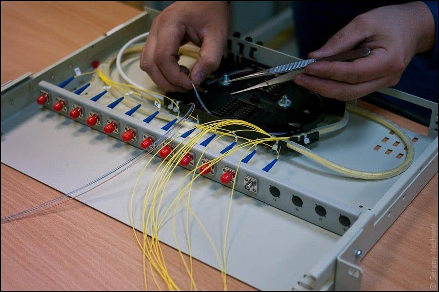 - сваривание оптических волокон при помощи специального оборудования.