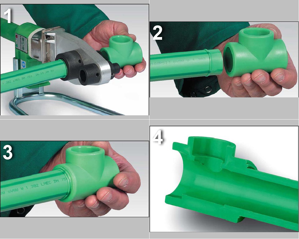 При реализации этой технологии монтажа ПП труб важно соблюдать два основных условия: температурный и влажностный режим. Все работы нужно выполнять при температуре воздуха от +5, +35 °С