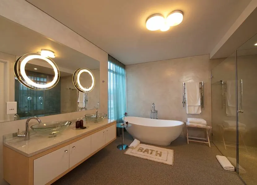 Помимо удобства и красоты освещения, а также сохранения потолка, нужно позаботиться о водонепроницаемости светильников. Ванная – это помещение с повышенной влажностью, поэтому просто хорошей вентиляции будет недостаточно как для долговечности ламп, так для вашей безопасности.