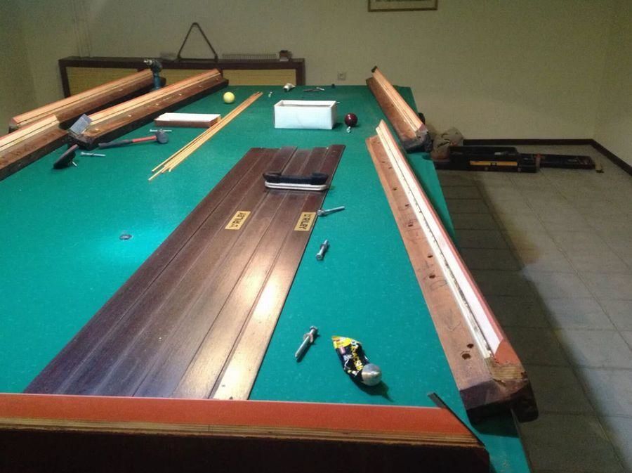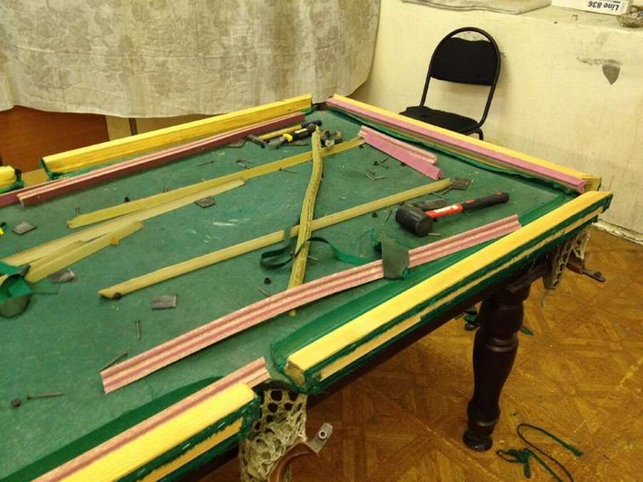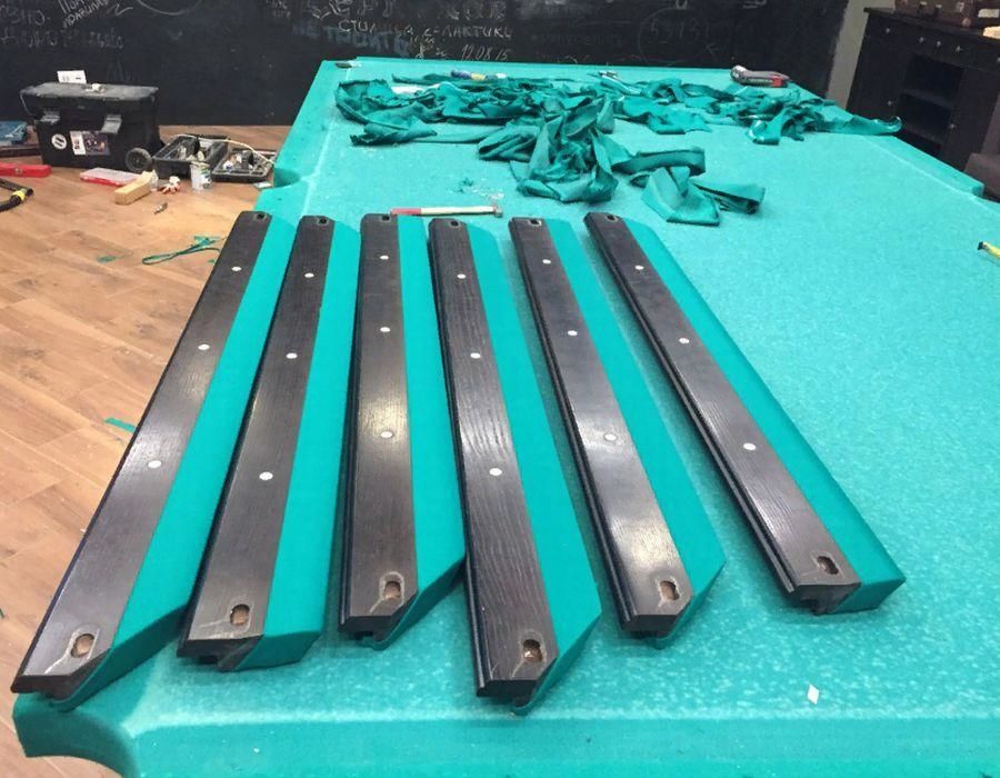 Так же и борта с лунками требуют к себе внимания, при реставрации бильярдного стола. Процесс этот кропотливый, так что, что бы получить желаемый результат, наберитесь терпения.