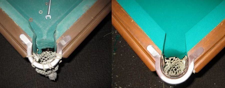 Лузы также являются неотъемлемой частью борта. На фото вы видите борта не обтянутые сукном, а также не до конца обтянутую лузу.