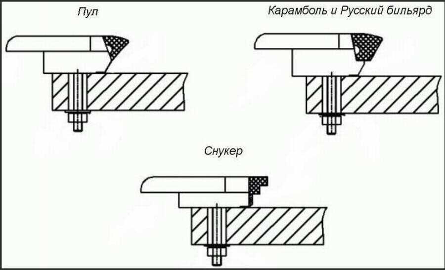 Обратите также внимание, что часть борта, на которую приходится удар шара не является единым целым с деревянной частью. Валик выполнен из плотной резины, служит для защиты всей конструкции от деформации, также имеет определенную высоту и угол наклона