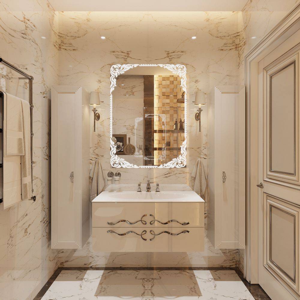 - В ванной. Ванная без зеркала – это как кухня без плиты. Форма и размер может быть любым, но место выделяется всегда одно: над раковиной. Подсветка выполняет важную роль: делает более комфортными ежедневные гигиенические процедуры.