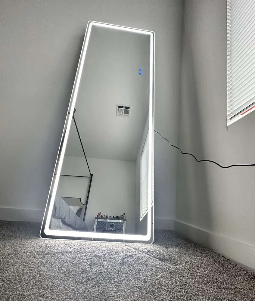Для того чтобы иметь возможность рассмотреть себя в полный рост, нужно выбирать большое напольное зеркало. При необходимости конструкцию можно вращать или переставлять с одного места на другое. Единственное, что нужно учитывать при этом — длину электрического провода.