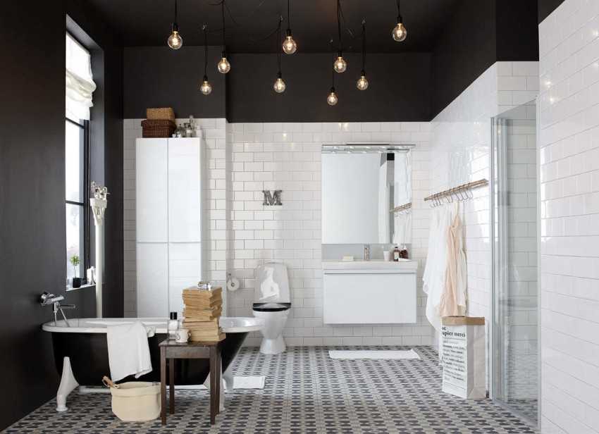 Оптимальные варианты для освещения ванной: один светильник с большой лампочкой, несколько — со средней или небольшие точечные приборы