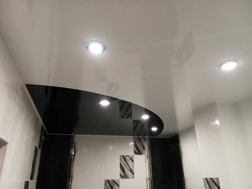 Если в ванной натяжные потолки, то для обустройства освещения потребуются светильники, предназначенные для натяжных конструкций. Они крепятся к направляющим или потолочным плитам.