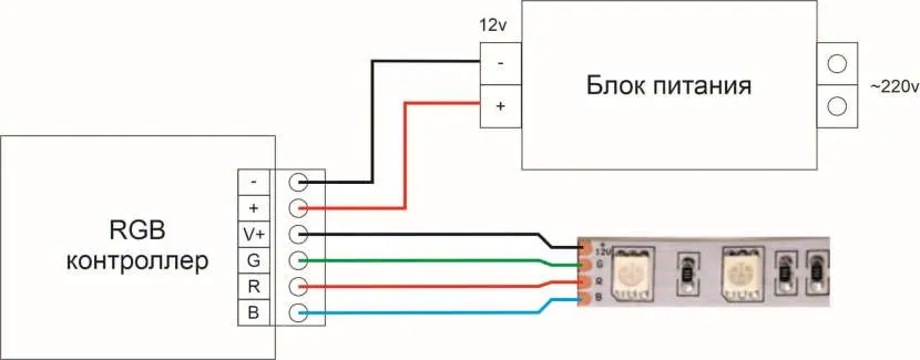 Поэтапный алгоритм и схема подключения светодиодной ленты RGB