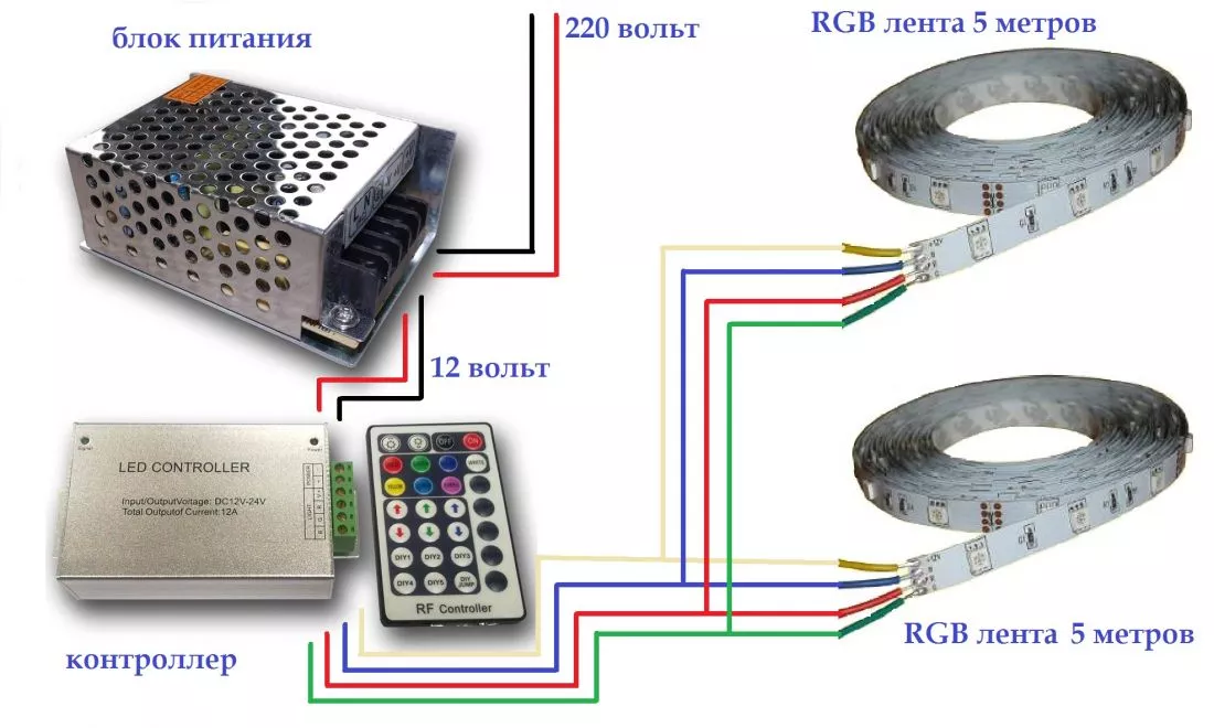 Контроллер светодиодной ленты невозможно использовать без блока питания.