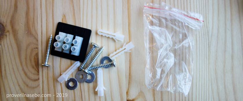 И в том и в другом комплекте имелись и шурупы для крепления и электрическая колодка для присоединения изделий к электрической сети: