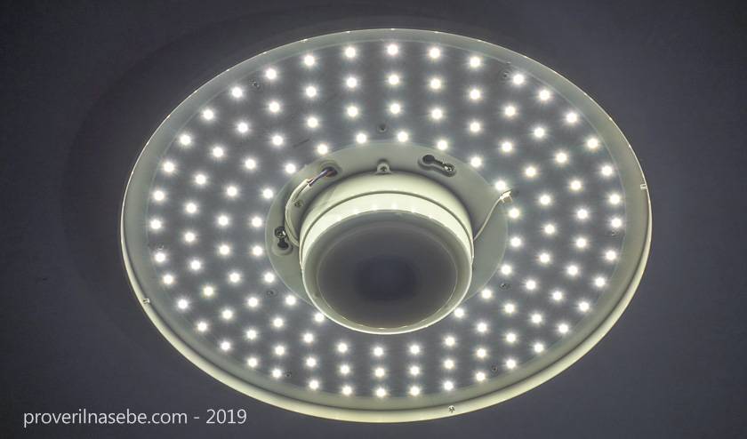 Таким образом, данных светильник, мощностью 36 ватт, с установленным рассеивателем достаточен для освещения примерно 9-10 метровой комнаты. Если бы у нас не было дополнительных спотов по периметру, то одной этой люстры было бы явно недостаточно. Хотя. может быть это мы уже привыкли к яркому свету. Кому-то покажется, что яркости хватает. Но я же пишу о своих впечатлениях. Мне показалось, что 36 ватт для 12-метровой комнаты — маловато.