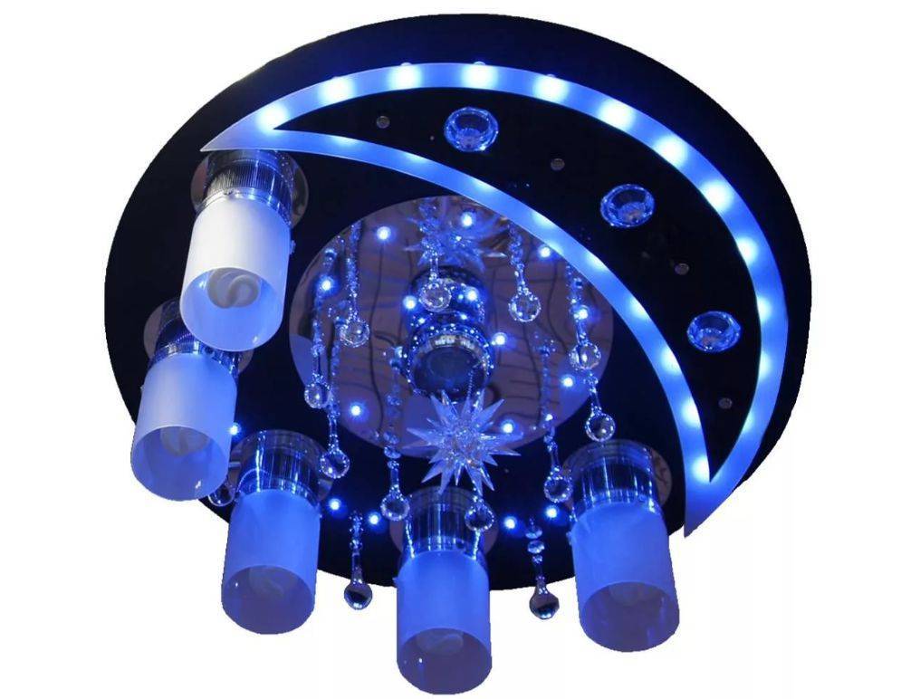 Цветов в подсветке бывает несколько, причем некоторые люстры устроены так, что вы можете установить плавное изменение цветов в комнате.