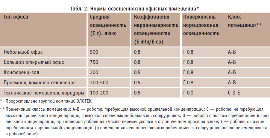 Освещение в офисе должно быть на должном уровне. Вам постоянно происходит разная рутинная работа, собеседования, конференции, показываются презентации, для нормального восприятия глазом, освещение рабочих зон должно быть довольно высоким.