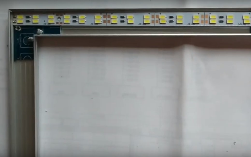 Диодную ленту нарезают по размеру. Снимают защитный слой и приклеивают внутрь корпуса. Припаивают провода или используют специальные коннекторы для соединения. Для квадратной конструкции потребуются угловые.